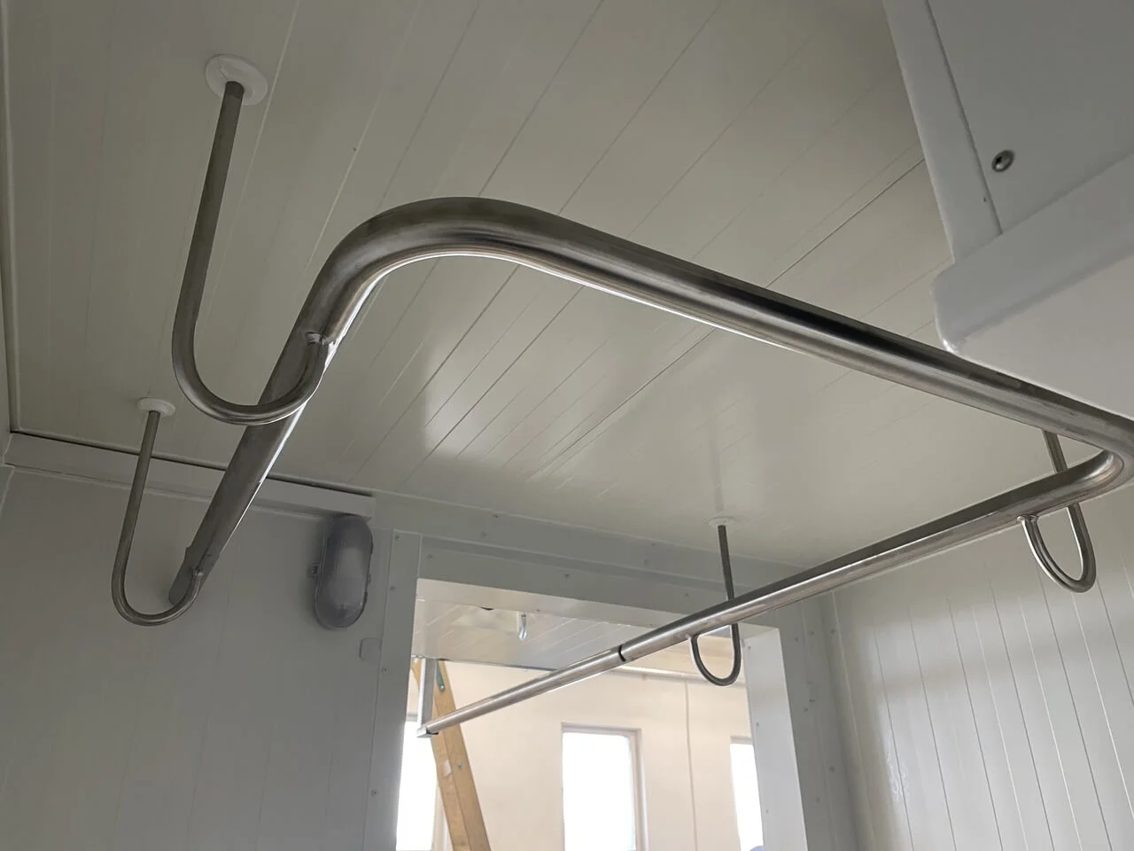 - Pipe rail (U-shape): made of acid-resistant steel for hanging hooks