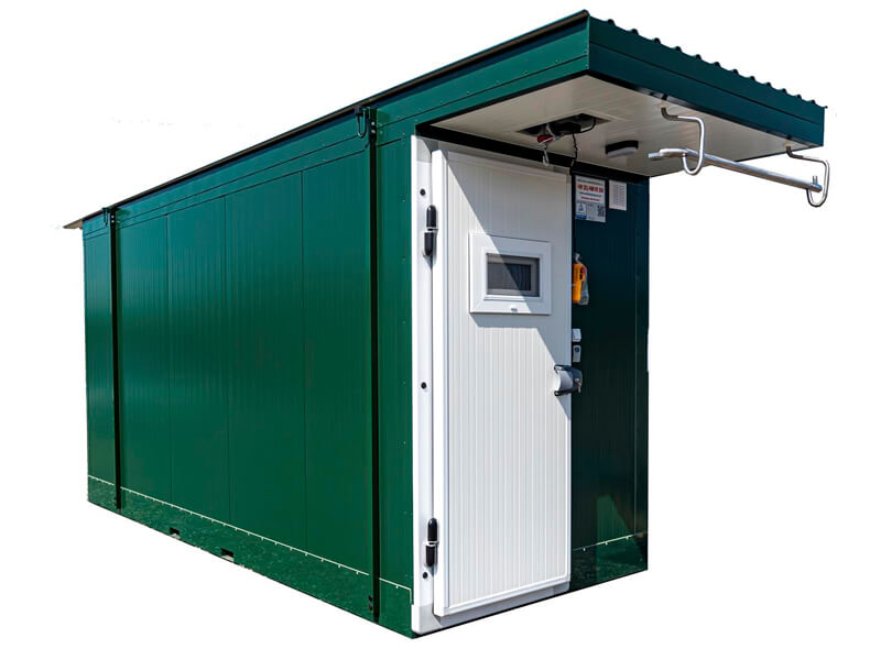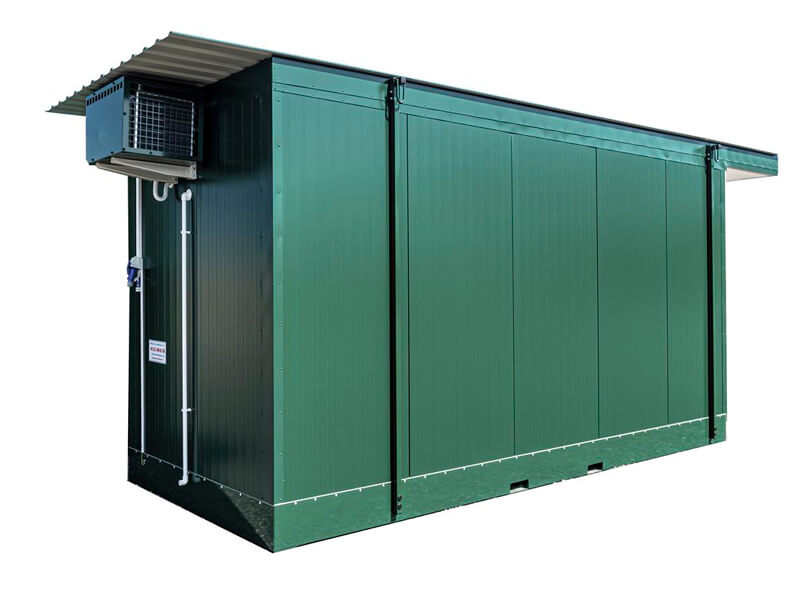 Our containers are made from 100 mm-thick polyurethane foam layered panels, covered on both sides with a metal sheet (new XPS technology, no corrosion, long-lasting, easy to clean, easy to move, no visible installation, no silicone, superb isolation).