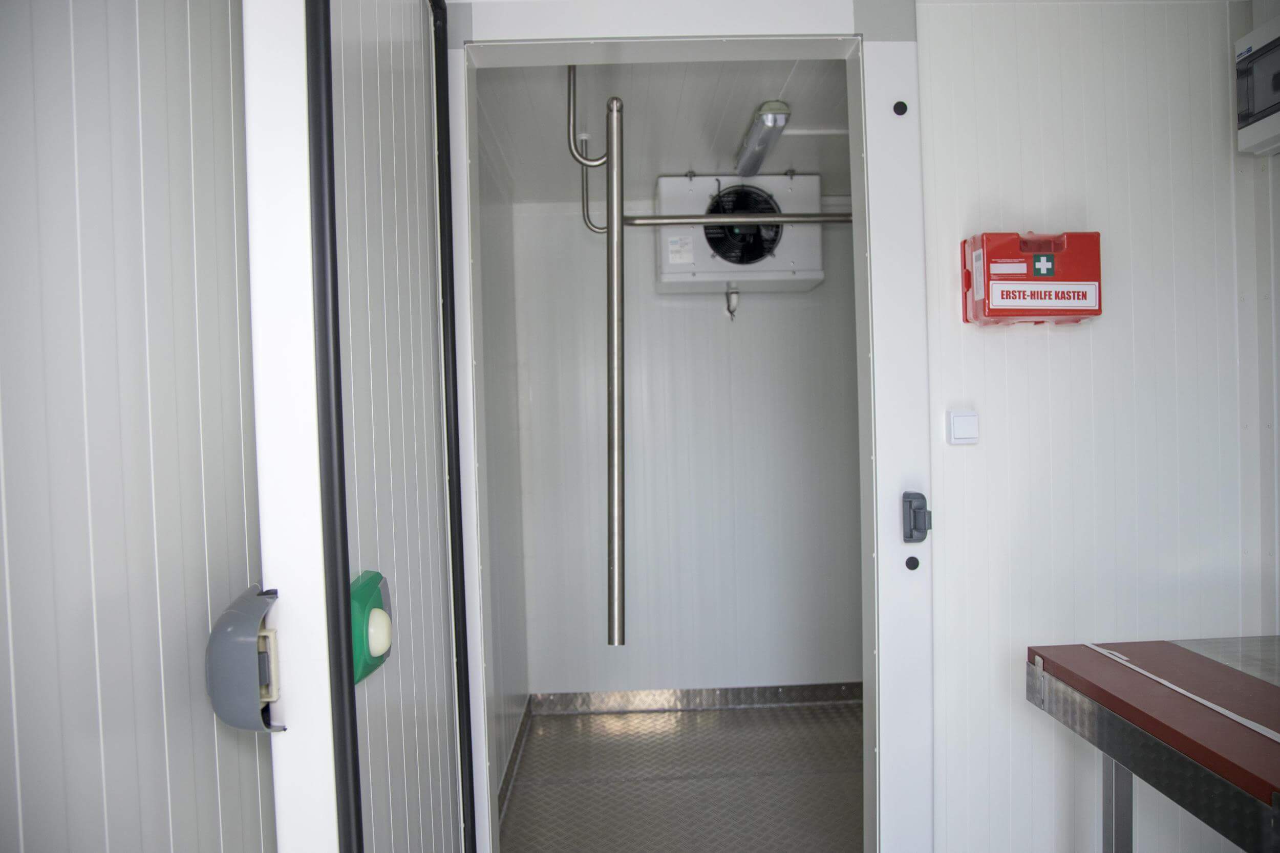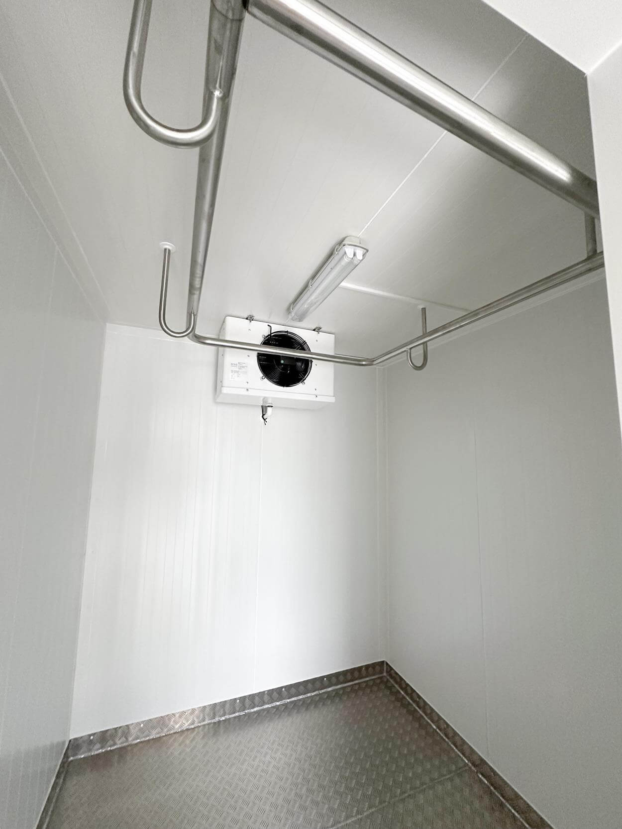 Cooling room – a dedicated area for cooling and storing game. Thanks to the high-quality Embraco Aspera cooling unit, 10 cm-thick walls, and special cooling doors, a minimum cooling temperature of up to -5°C can be set, regardless of the outdoor season.