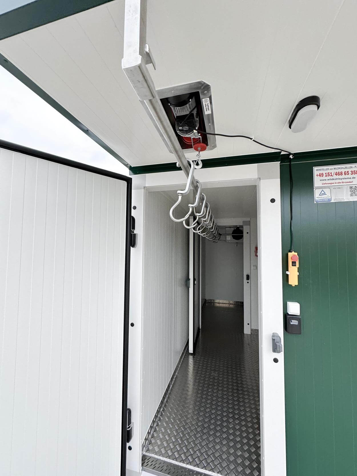 - Electric hoist with a load capacity of 300/600 kg above the entrance of the cooling container