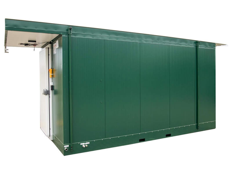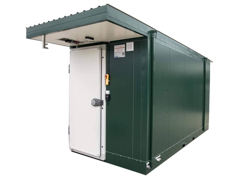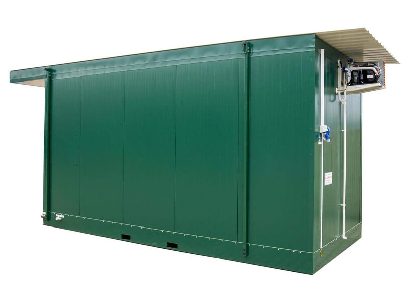 Our containers are made from 100 mm-thick polyurethane foam layered panels, covered on both sides with a metal sheet (new XPS technology, no corrosion, long-lasting, easy to clean, easy to move, no visible installation, no silicone, superb isolation).