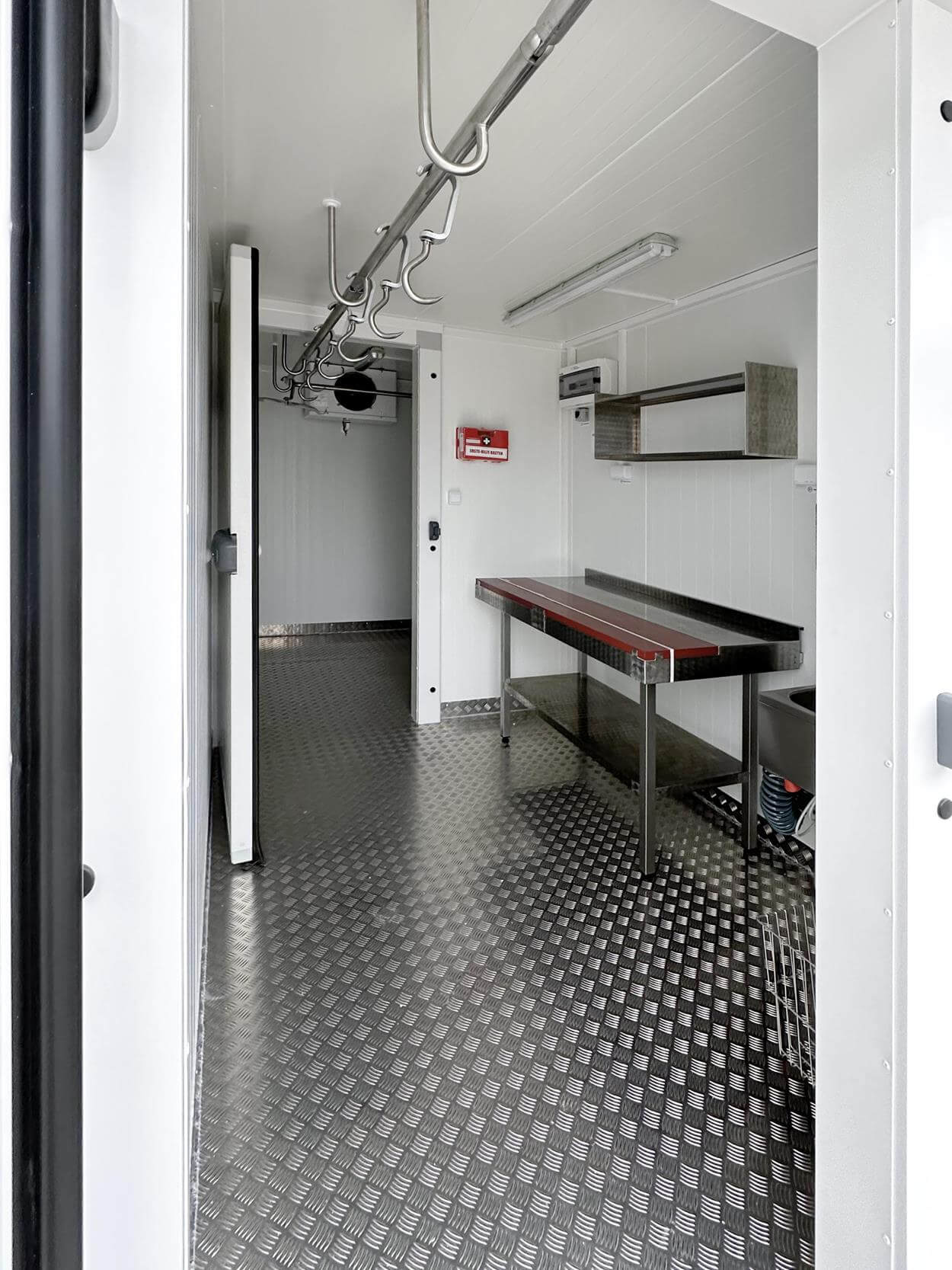 Another model we would like to introduce to you is a 5×2.2 m processing container. This unit is the best solution if you are looking for a new option for processing, cooling, and storing wild game.