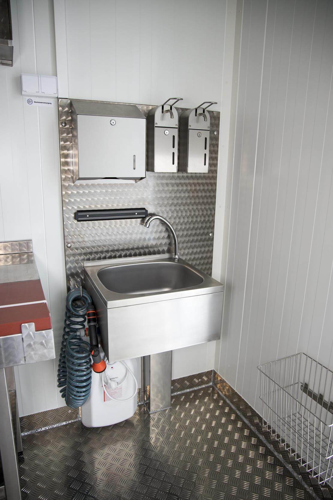 - Water hose, large back panel, paper towel dispenser