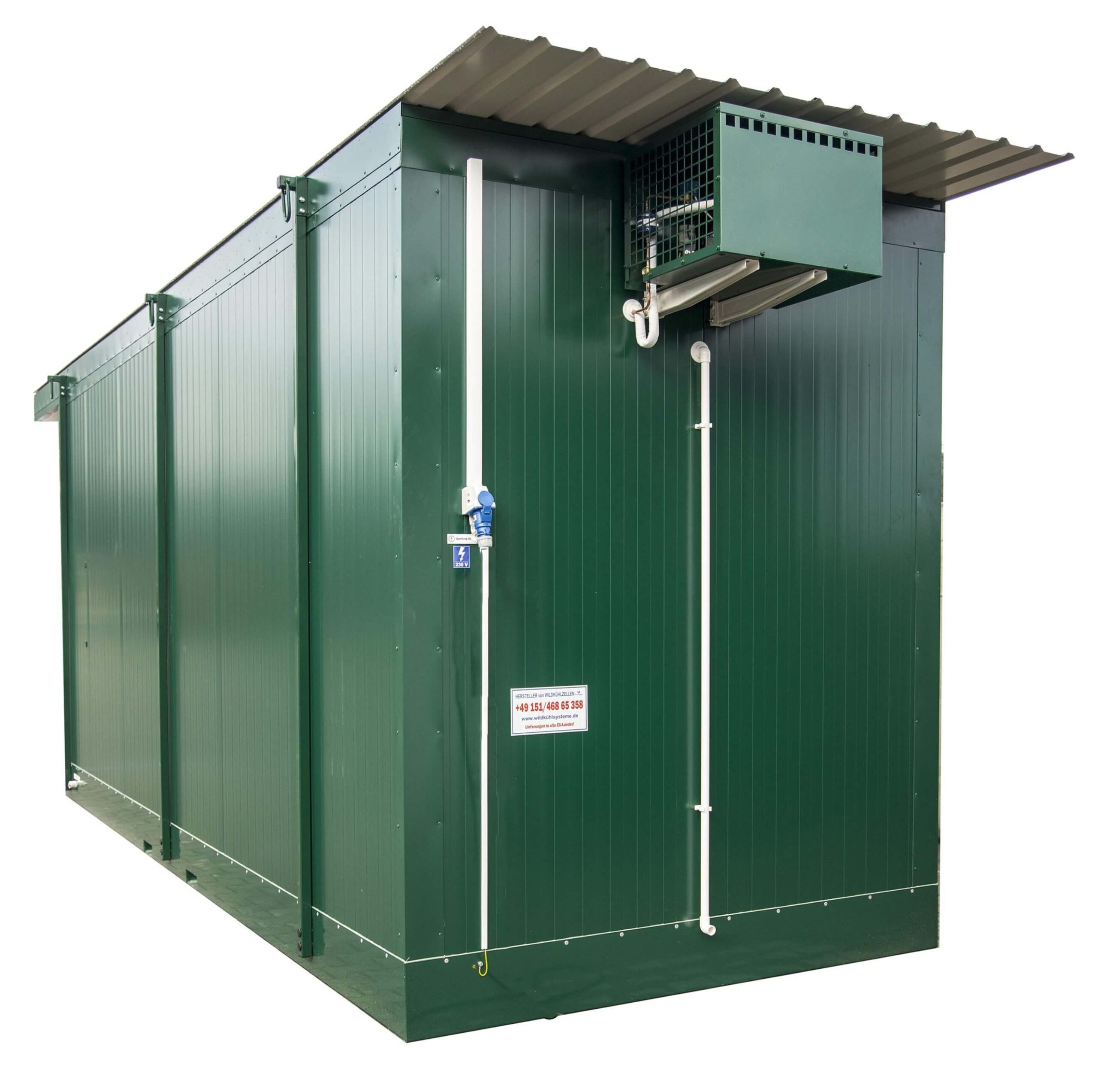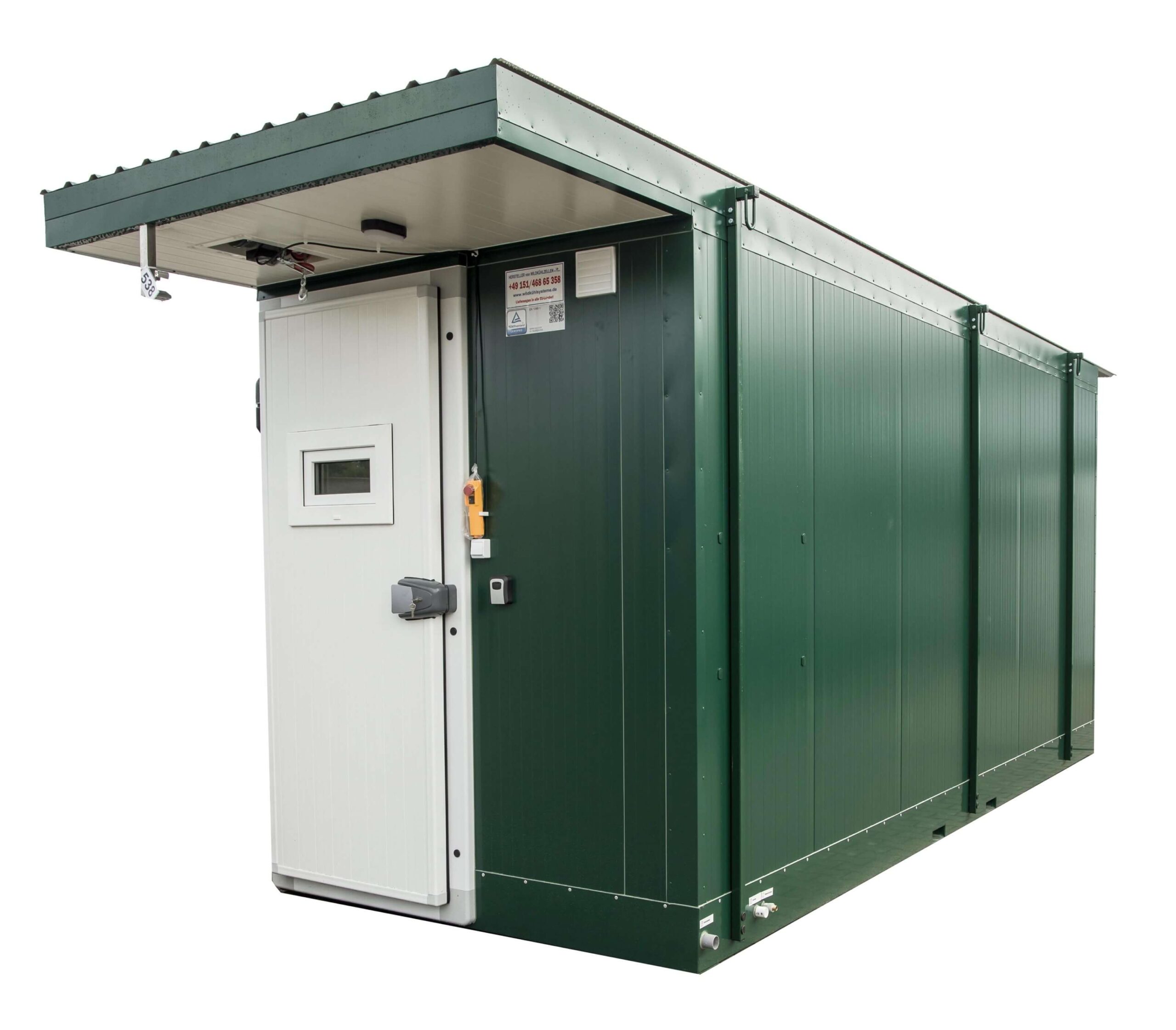 Our containers are made from 100 mm-thick polyurethane foam layered panels, covered on both sides with a metal sheet (new XPS technology, no corrosion, long-lasting, easy to clean, easy to move, no visible installation, no silicone, superb isolation).
